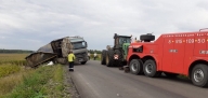 Повышенной сложности эвакуация грузовых автомобилей (постановка на колеса опрокинувшихся автомашин), вытаскивание на дорожное полотно